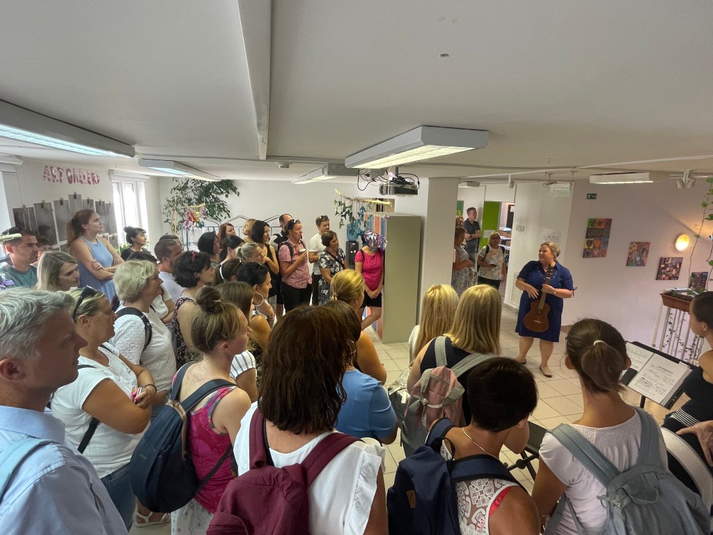 She stays in touch with her school in Slovenia where she taught before moving to Hungary. We had the opportunity to share our expertise with an enthusiastic group of Slovenian teachers and administrators from that school last Friday. They visited our school to learn about our school system, the curriculum, mastery learning, and what our classrooms look like.